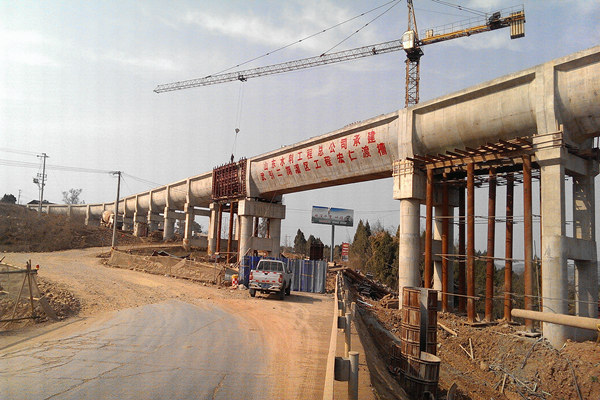 武引二期西梓干渠3标段宏仁渡槽(总长1411米)已完成浇筑渡槽槽身共113跨,共计1381米。